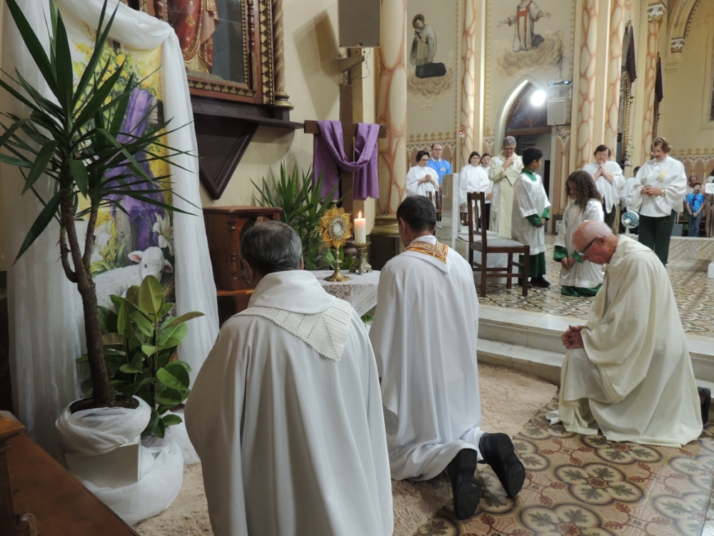 Na Paróquia São Luiz Gonzaga, a programação da Semana Santa incluiu diversas missas na Igreja Matriz, incluindo a cerimônia de lava-pés, renovação do mandato dos ministros e Via Sacra. No feriado da Sexta-feira Santa, 3 de abril, a paixão e morte de Jesus foram encenadas na praça XV de Novembro. "Quem O condenou não foram os romanos, mas o sumo-sacerdote, pelos sinais que Jesus realizava, pela palavra da boa nova do reino, que convidava as pessoas a abraçar. O sumo-sacerdote que interpretava a lei do Senhor para manipular o povo, para manter o domínio e sua estrutura", discursou o pároco Miguel Debiasi durante o sermão.
