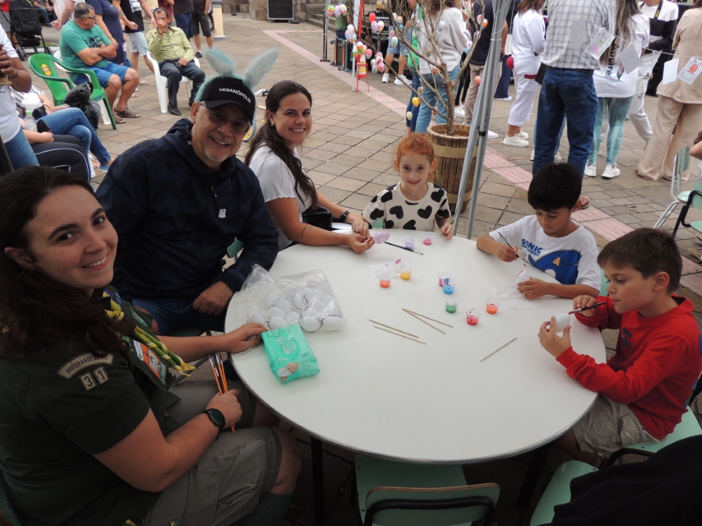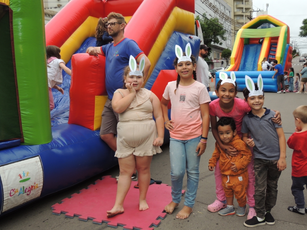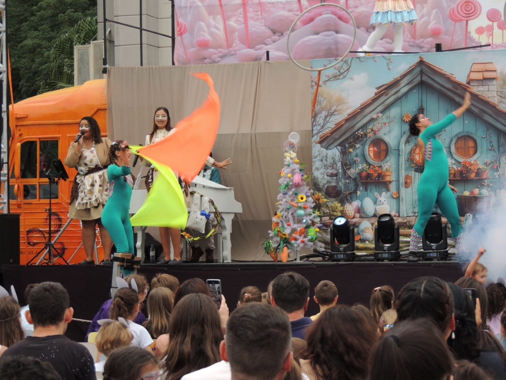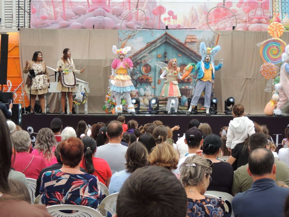 A tarde de domingo, dia 5 de abril, foi marcada por alegria, integração e momentos de diversão em Veranópolis com a realização da Páscoa Encantada na praça XV de Novembro. O evento reuniu crianças e famílias em uma programação voltada à celebração da data de forma lúdica e acolhedora. Entre as atrações, o público participou do Circuito do Coelho, com entrega de presentes surpresa, pintura de rosto e oficinas de pintura de biscoitos e ovos de Páscoa. O espetáculo teatral Jardim Encantado, apresentado pela Caravana da Ilusão, também integrou a programação.