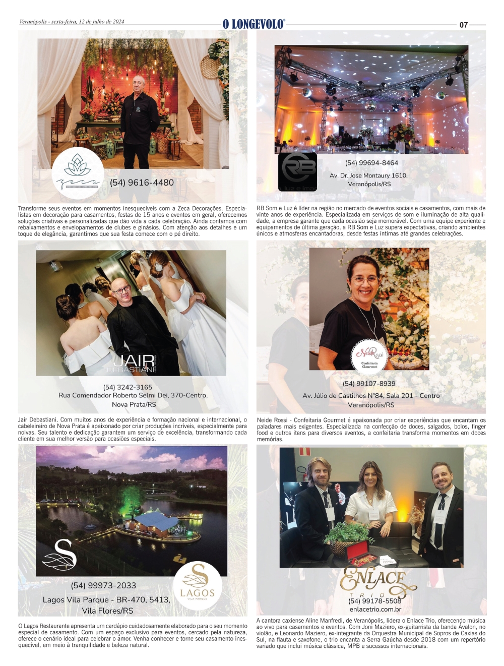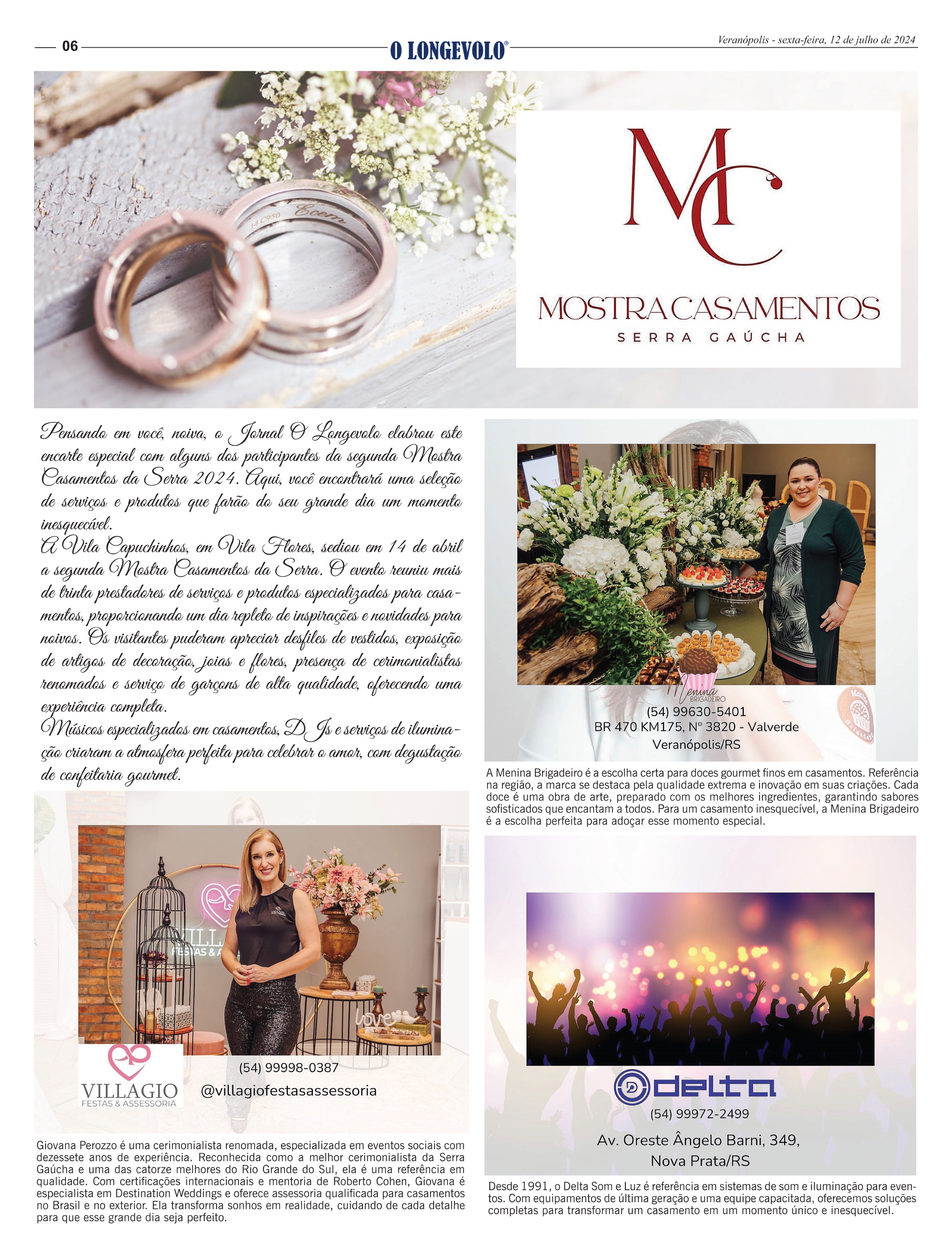 Veranópolis Vila Flores Cotiporã Fagundes Varela Rio Grande do Sul Especial Mostra Casamentos Serra Gaúcha - 12 de julho de 2024 Clique nas imagens para ler em alta resolução